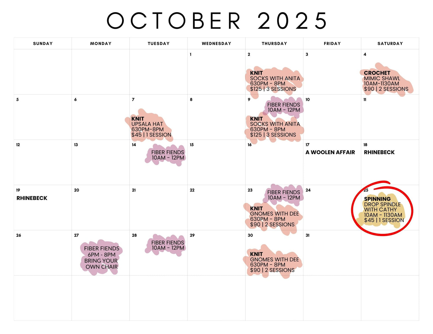 Community Day - Moved the drop spindle class! See OCTOBER