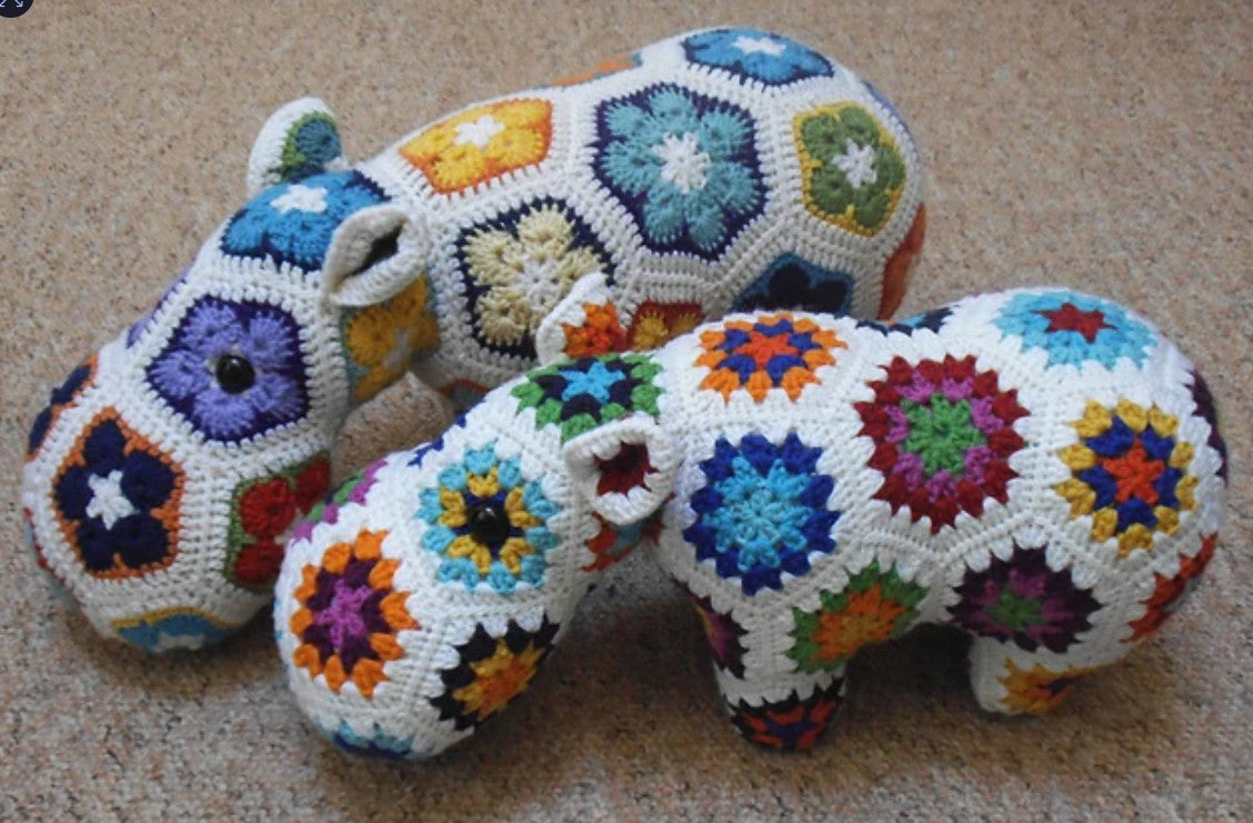 Hippo | (2 Sessions) | Crochet Hippo in both granny square and african violet squares. Who can resist a stuffed Hippo?