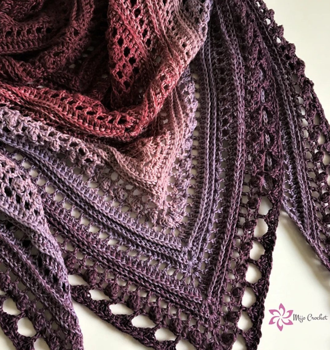Secret Paths Shawl | (2 Sessions) | Triangle shawl with multiple stitch styles, explore new techniques and play with color.